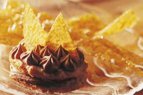 - Remove the meringues from their moulds as soon as they have cooled. Place one on top of another, with a layer of ganache in between.