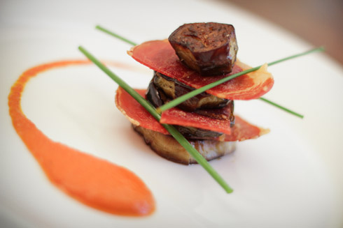 - Drizzle two tablespoon of piquillos coulis