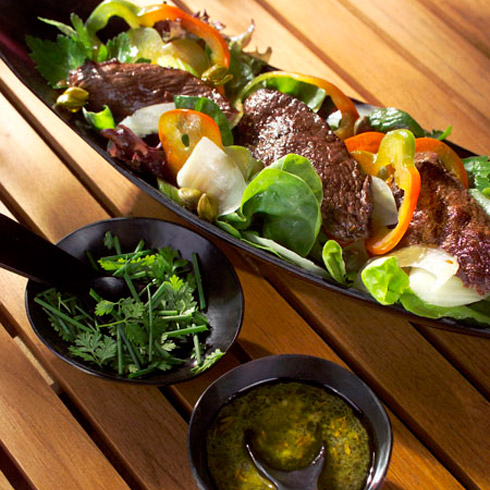 - Prepare the salad dressing and add the reduced marinade to the dressing.